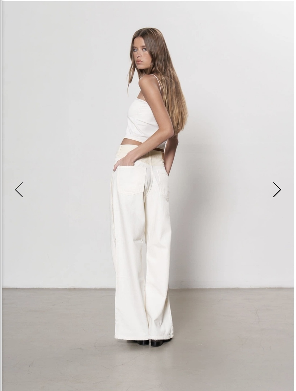 Pant denim en natural con detalles en crema. Disponible del 36 al 42